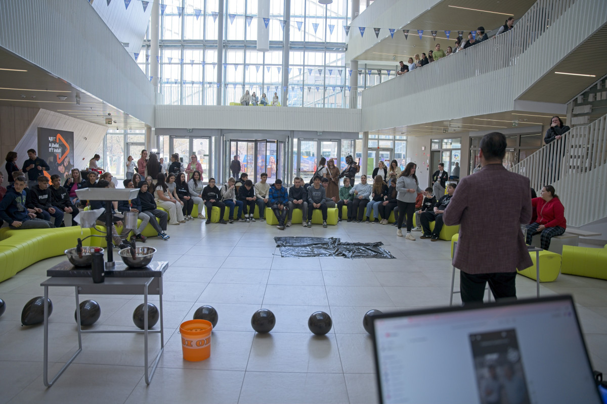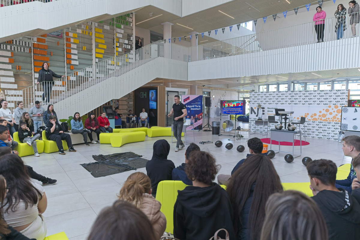 Élményfizika óra, fröccsöntés és egy motiváló beszélgetés is várta azokat a csépai és orgoványi diákokat, akik 2026. április 1-jén részt vettek a Tanítsunk Magyarországért! program keretében megrendezett élménynapon a Neumann János Egyetemen.